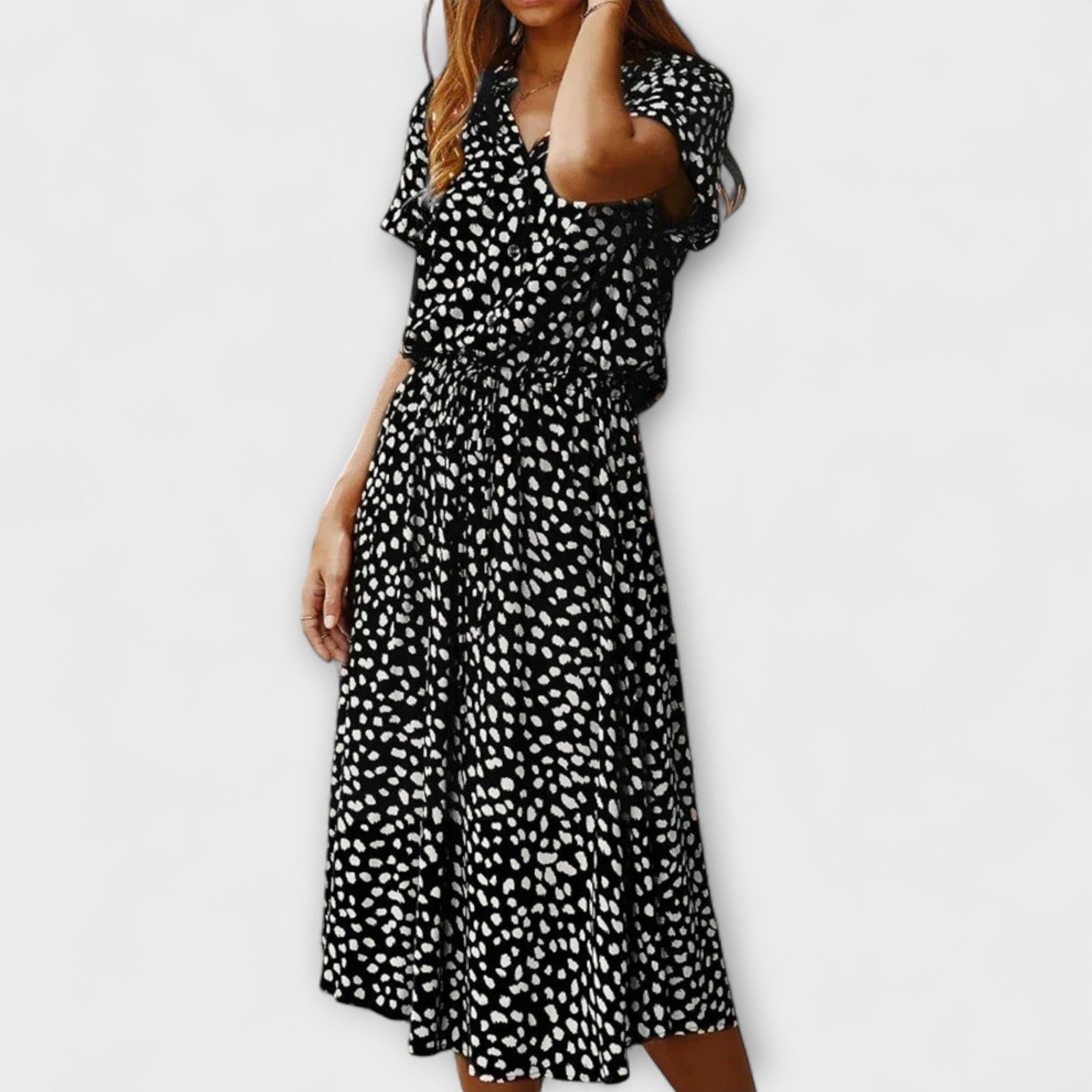 El vestido de verano de Melissa combina elegancia estilosa con funcionalidad apta para el día a día. Su diseño clásico se adapta sin esfuerzo a cualquier atuendo, ya sea casual o elegante. Gracias a la suave tela, disfrutarás de comodidad durante todo el día sin tener que renunciar al estilo.