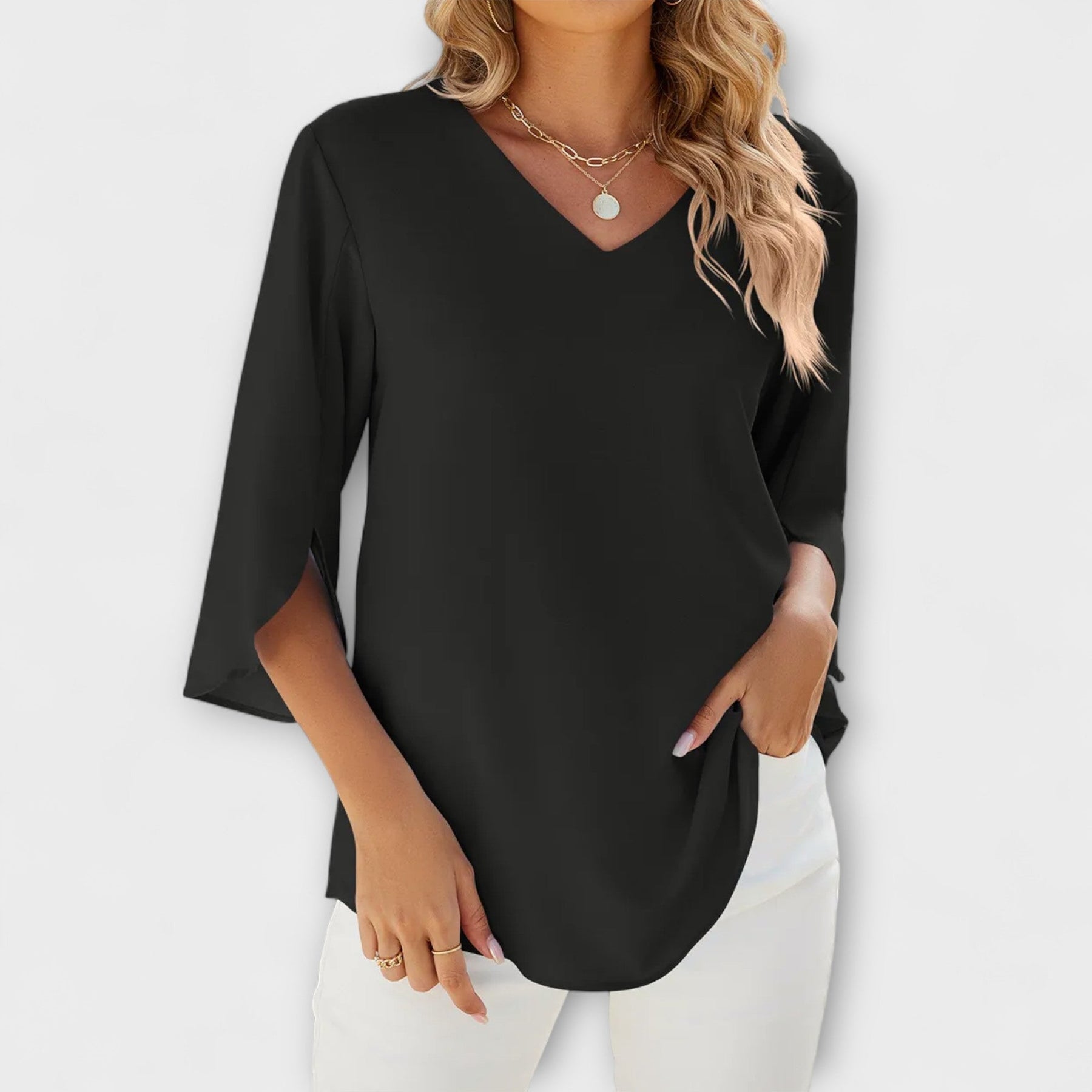 • Escote en V y mangas 3/4 – Para un look relajado y, a la vez, elegante.