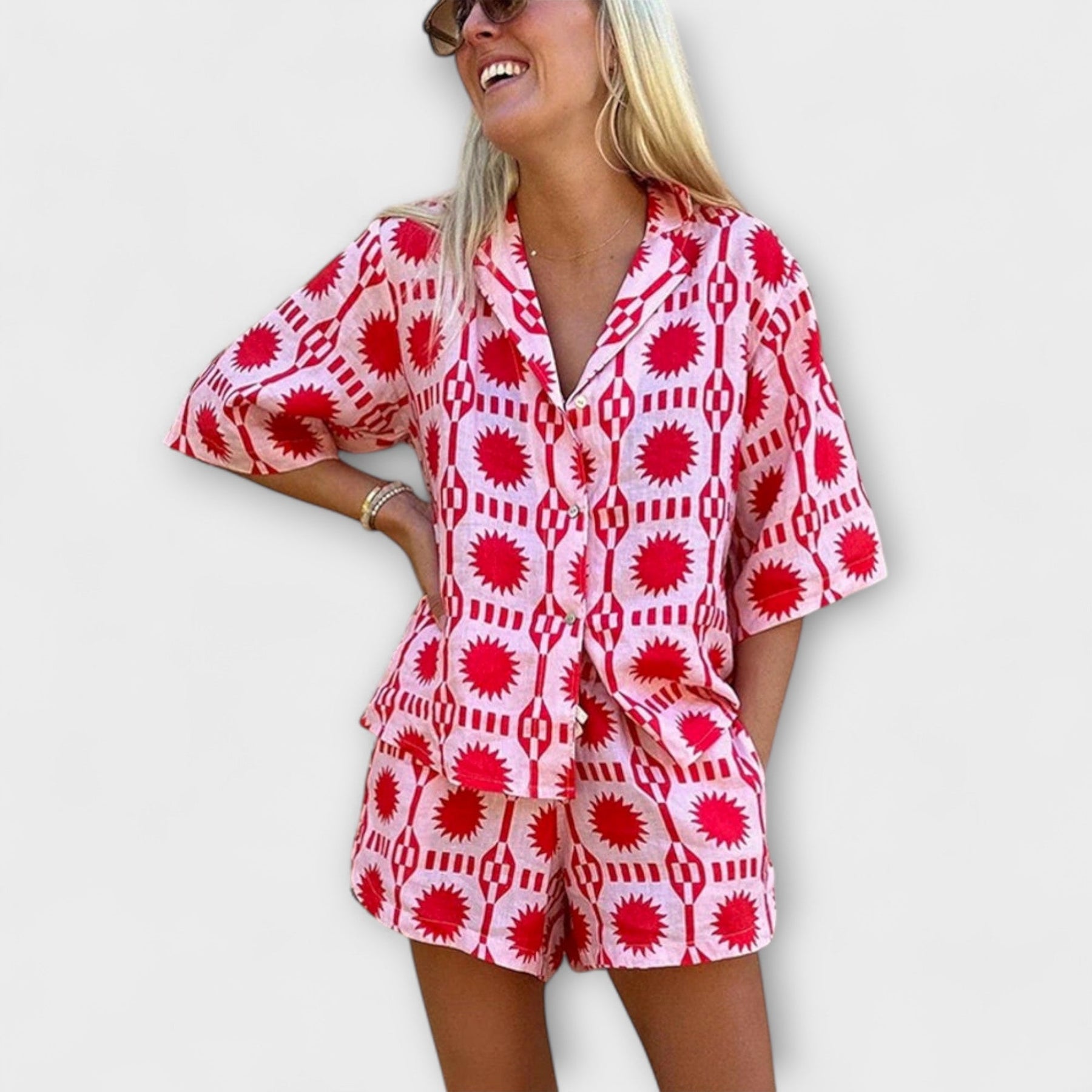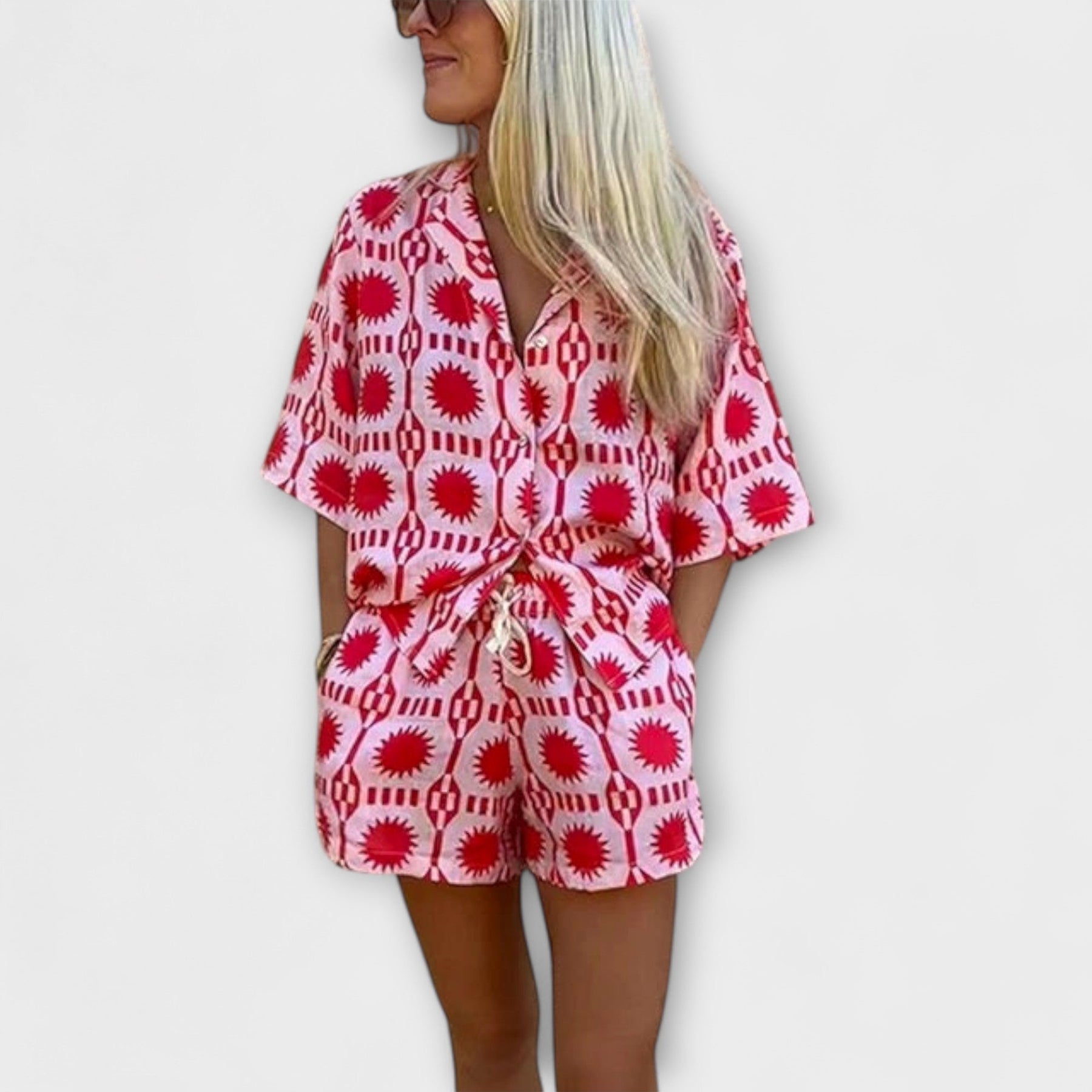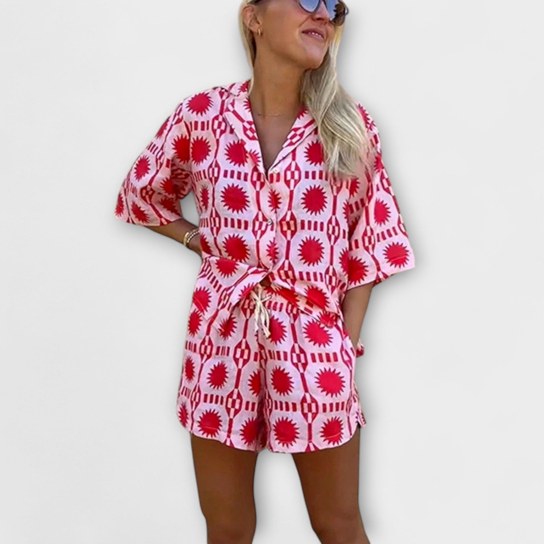 El conjunto de flores Celeste de dos piezas es la elección perfecta para días soleados. Con su cintura alta y el vibrante diseño floral, crea un look fresco y elegante para el verano, ideal tanto para días casuales como para ocasiones festivas.
